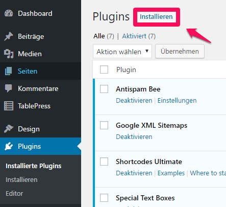 Hinweis: Die Installation ist in der Plugin-Sektion von WordPress.org beschrieben.